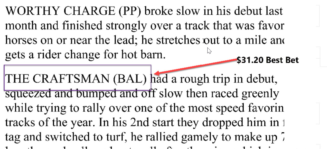 The racing at Saratoga was outstanding again this meet. I had a good meet and my Best Bets did well. Below are three longshot Best Bets that I picked during the meet -On Sunday, August 10, I had 3 Best Bets, two at Saratoga and one at Ellis Park and all 3 horses won including The Craftsman, who paid $31.20.